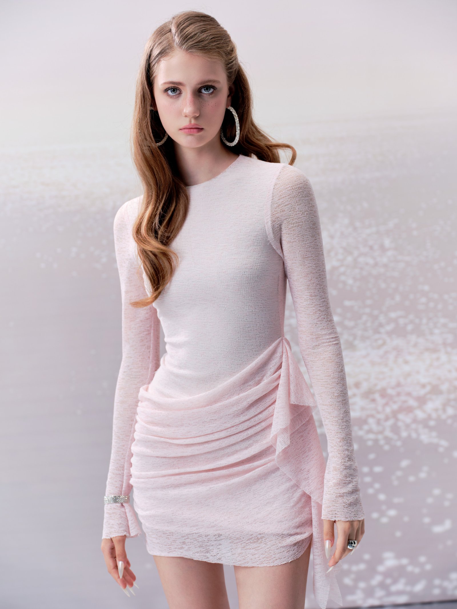 Elegant through soft pleated details on the skirt body creating visual depth and highlighting sophistication, sweet and feminine pastel pink color. Material: knitted jersey fabric