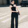 Returning to the fall lineup with a refined basic top made from stretchy, textured knit fabric, offering a comfortable fit with a feminine, elegant look