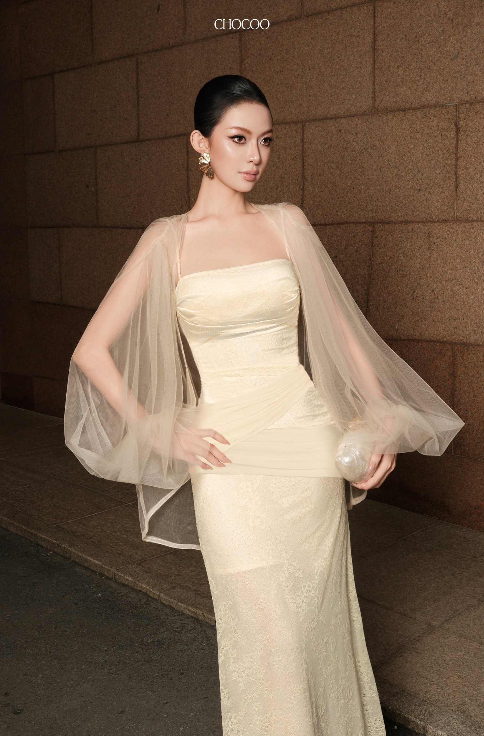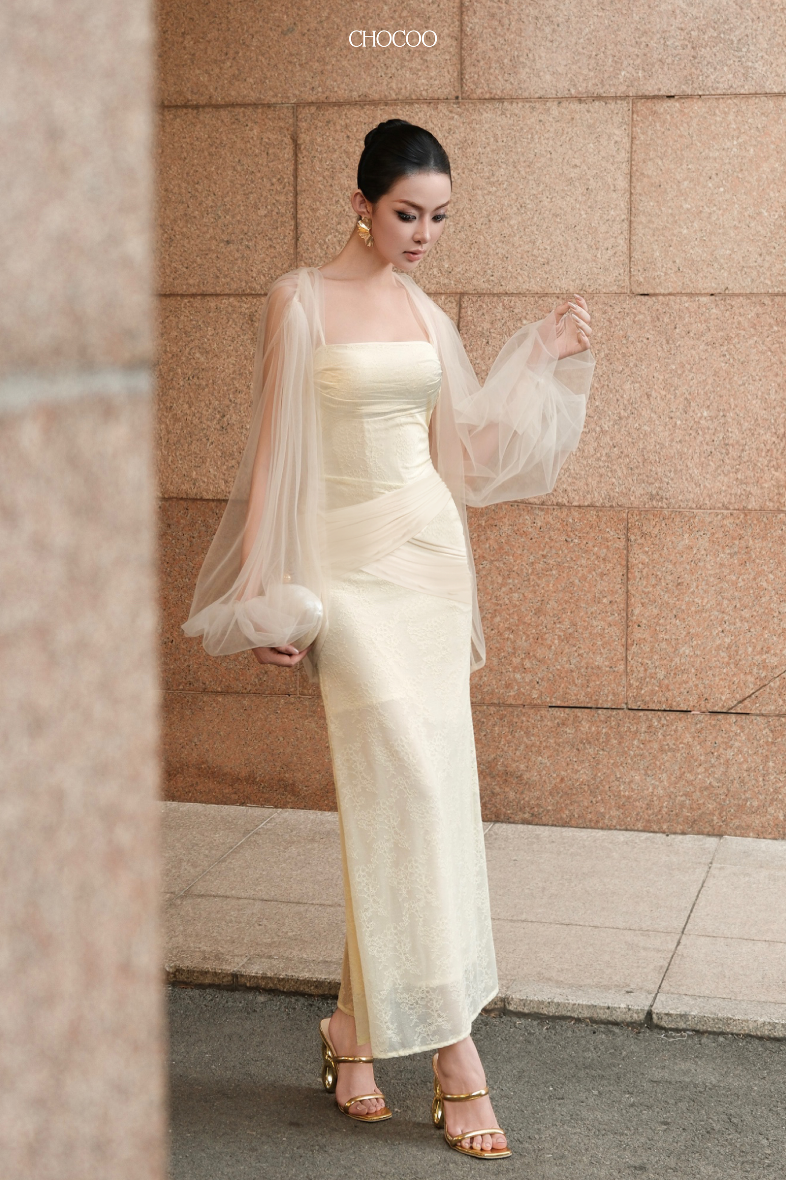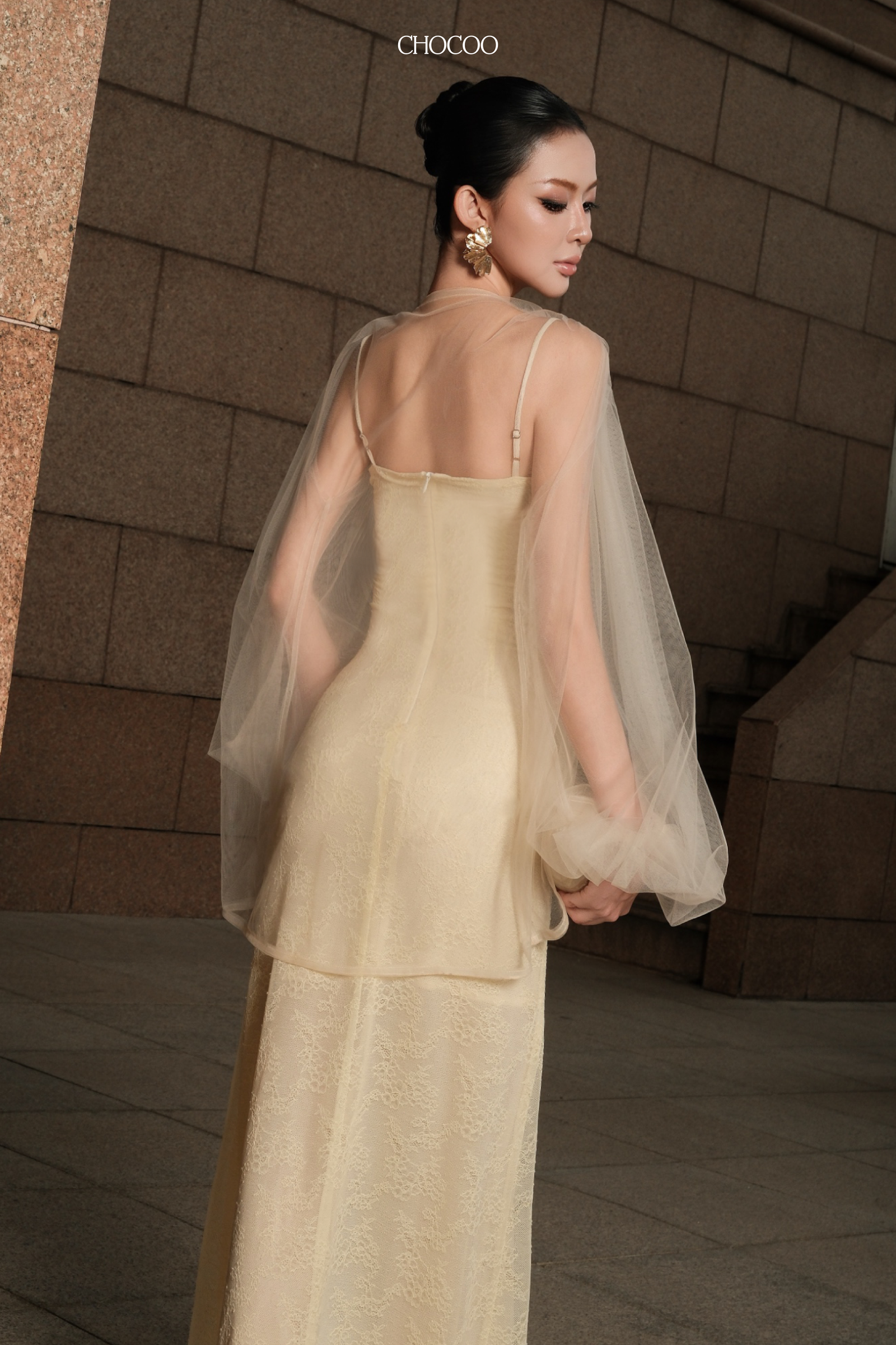 A sheer, flowing silk overlay that feels light and airy, like an autumn mist