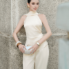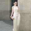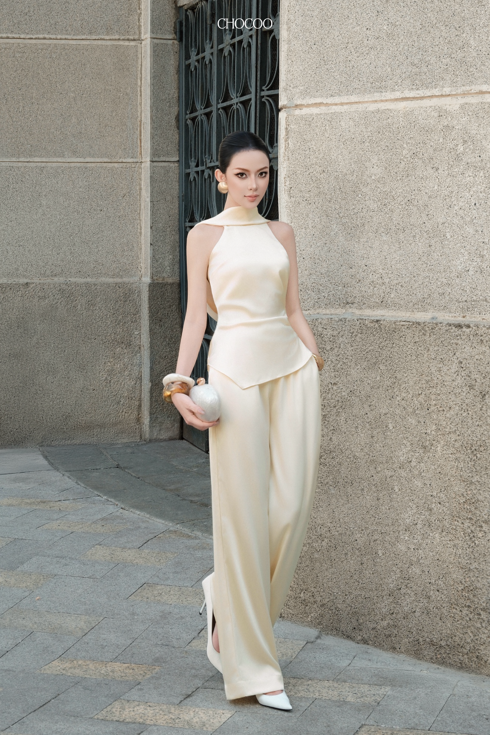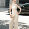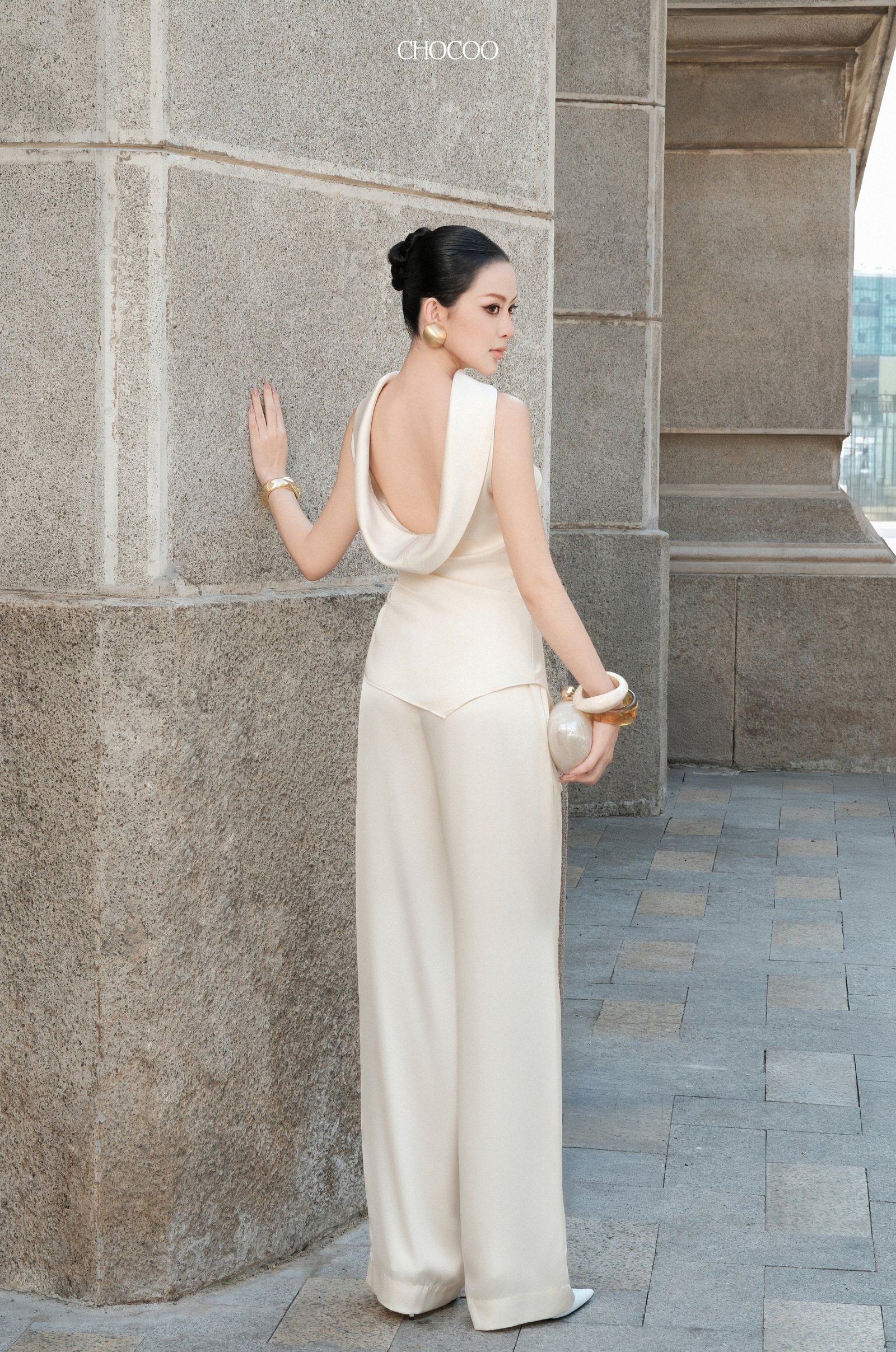 A soft cowl-neck open-back top with a flattering, waist-cinching fit, simple yet effortlessly eye-catching